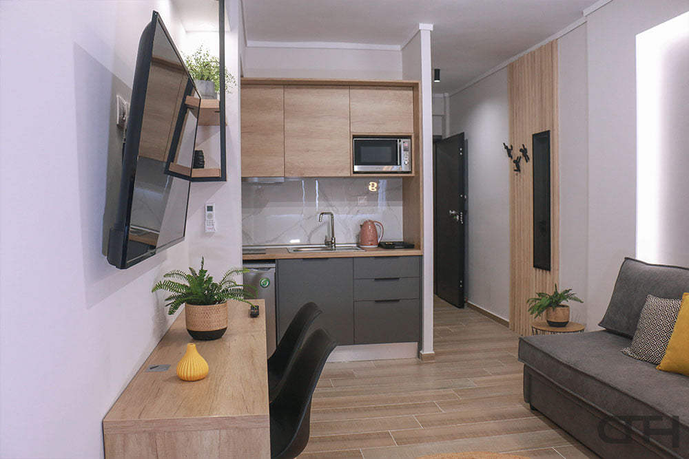White Tower studio is a 25m2 property with a fully equipped kitchen and spacious bathroom, Flat 4K smart 50” TV , inverter A/C unit and free Fiber 100Mbps Ethernet & Wi-Fi. Ideal for both business and vacation.